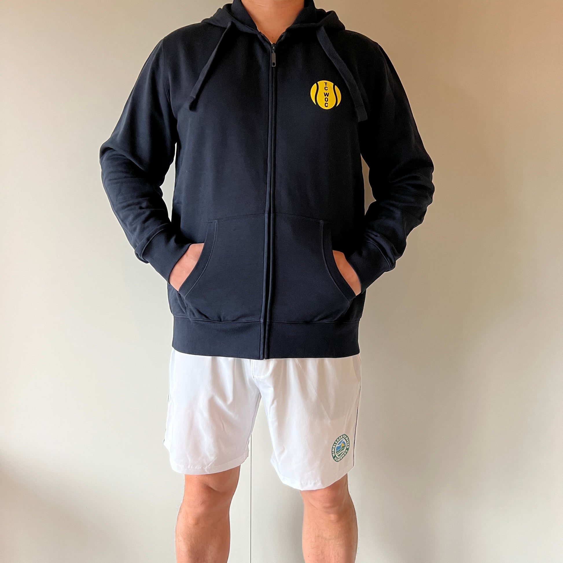 Effen vest met capuchon en afbeelding op de linkerborst. Het TC WOC logo staat groot op de rug.